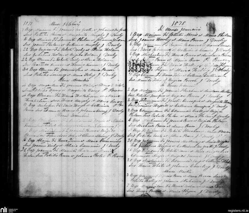Dunhill and Fenor; County of Waterford; Diocese of Waterford and Lismore. Baptisms, Oct. 1877 to Mar. 1878