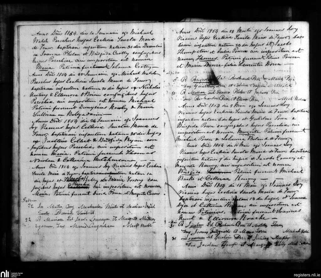 Dunhill and Fenor; County of Waterford; Diocese of Waterford and Lismore. Baptisms, Jan. 1854 to May 1854