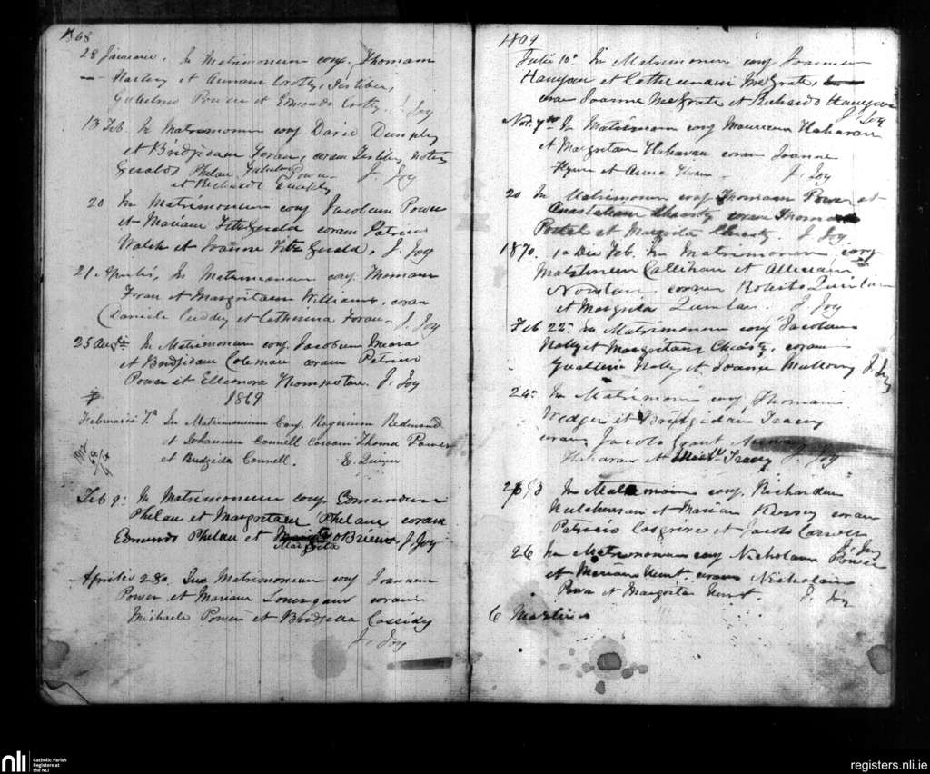 Dunhill and Fenor; County of Waterford; Diocese of Waterford and Lismore. Marriages, Jan. 1868 to Mar. 1870