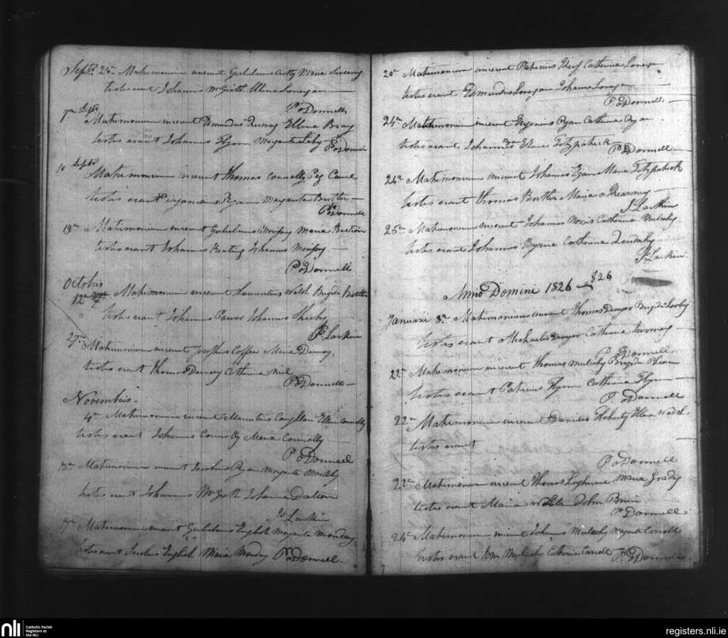 Newcastle; County of Tipperary, Waterford; Diocese of Waterford and Lismore. Marriages, Sep. 1825 to Jan. 1826