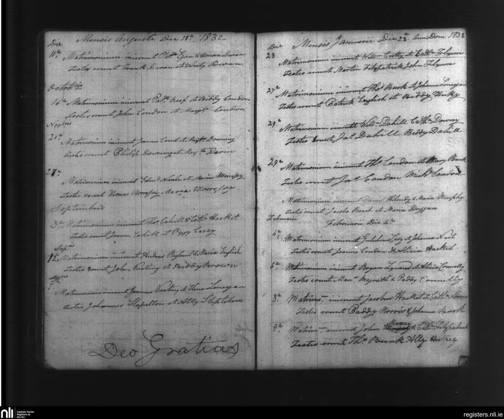 Newcastle; County of Tipperary, Waterford; Diocese of Waterford and Lismore. Marriages, May 1832 to Feb. 1833