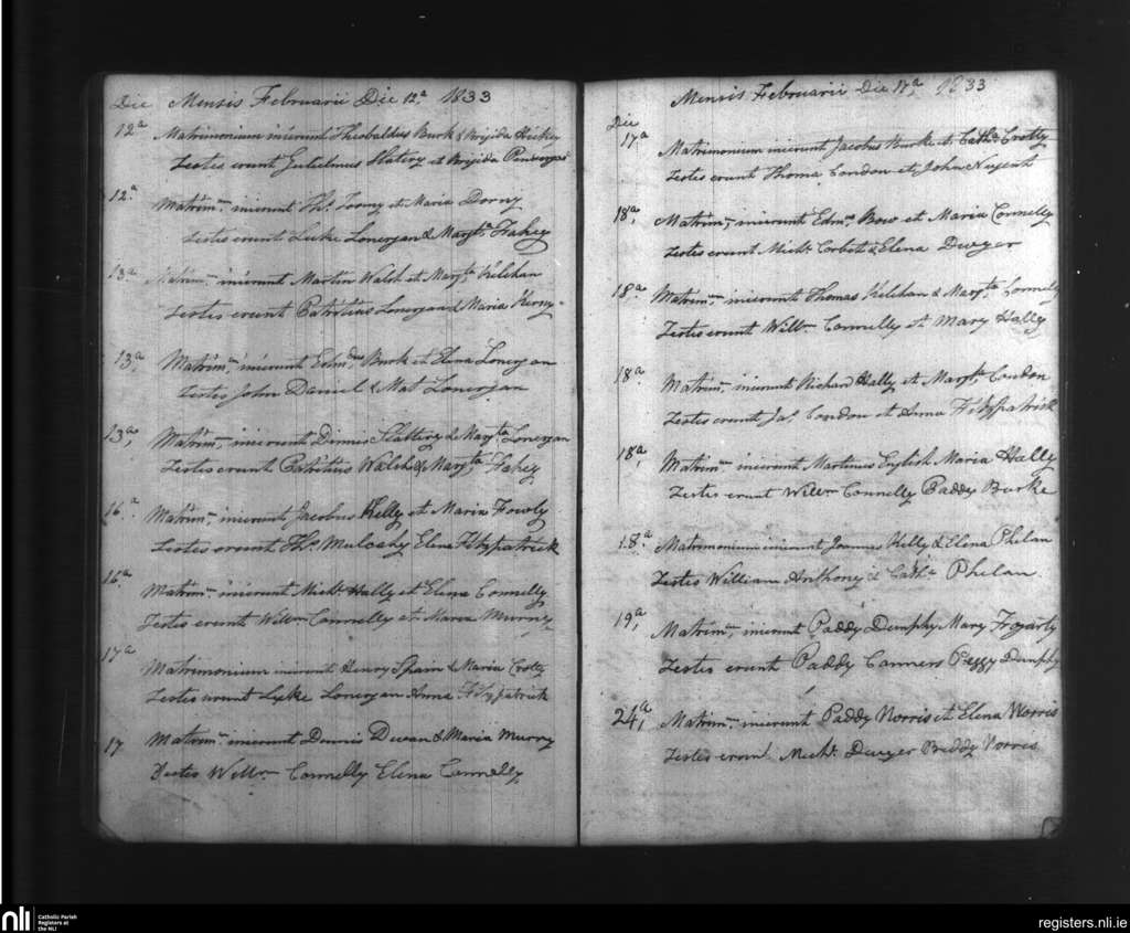 Newcastle; County of Tipperary, Waterford; Diocese of Waterford and Lismore. Marriages, Feb. 1833