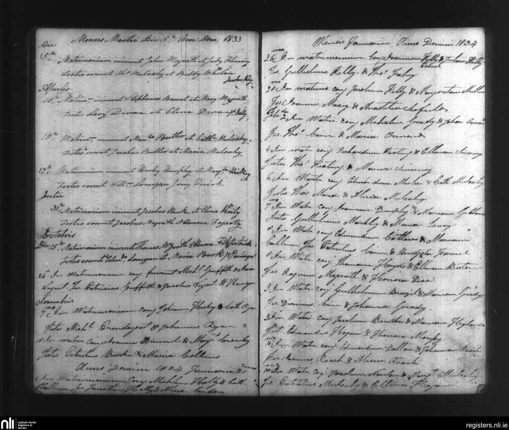 Newcastle; County of Tipperary, Waterford; Diocese of Waterford and Lismore. Marriages, Mar. 1833 to Feb. 1834