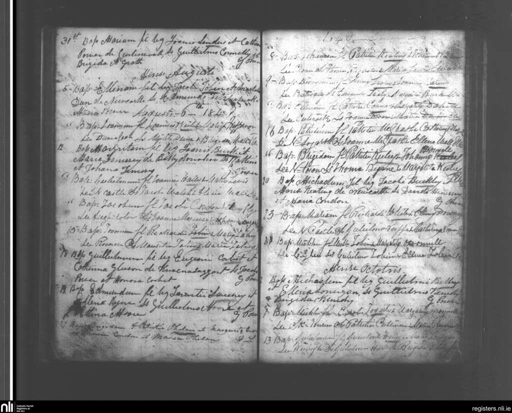 Newcastle; County of Tipperary, Waterford; Diocese of Waterford and Lismore. Baptisms, July 1849 to Oct. 1849
