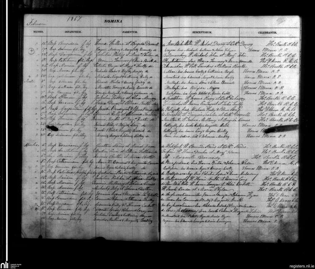 Newcastle; County of Tipperary, Waterford; Diocese of Waterford and Lismore. Baptisms, Feb. 1867 to Apr. 1867