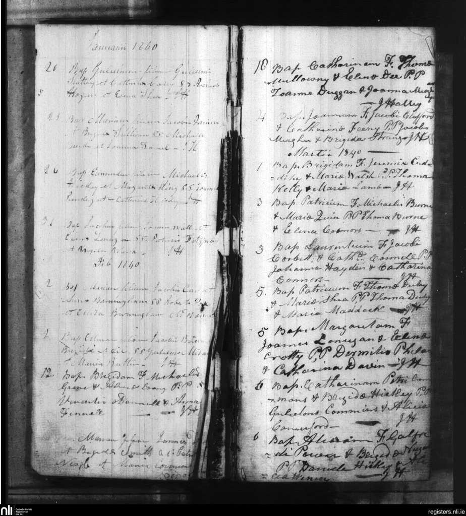 Gambonsfield and Kilcash; County of Tipperary, Waterford; Diocese of Waterford and Lismore. Baptisms, Jan. 1840 to Mar. 1840