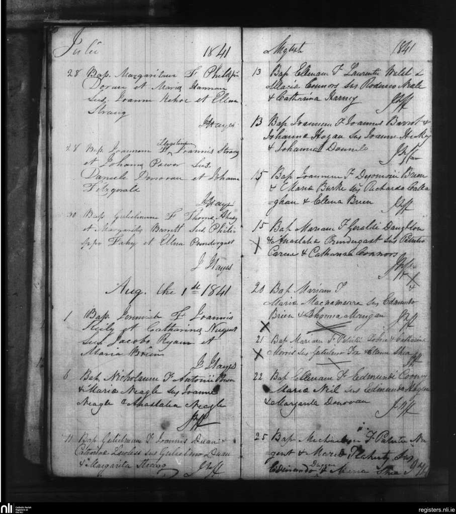 Gambonsfield and Kilcash; County of Tipperary, Waterford; Diocese of Waterford and Lismore. Baptisms, July 1841 to Aug. 1841