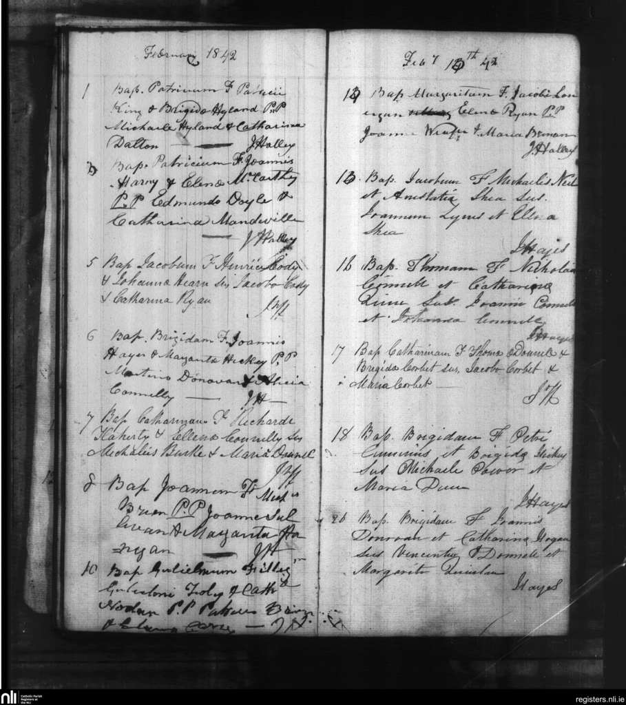 Gambonsfield and Kilcash; County of Tipperary, Waterford; Diocese of Waterford and Lismore. Baptisms, Feb. 1842