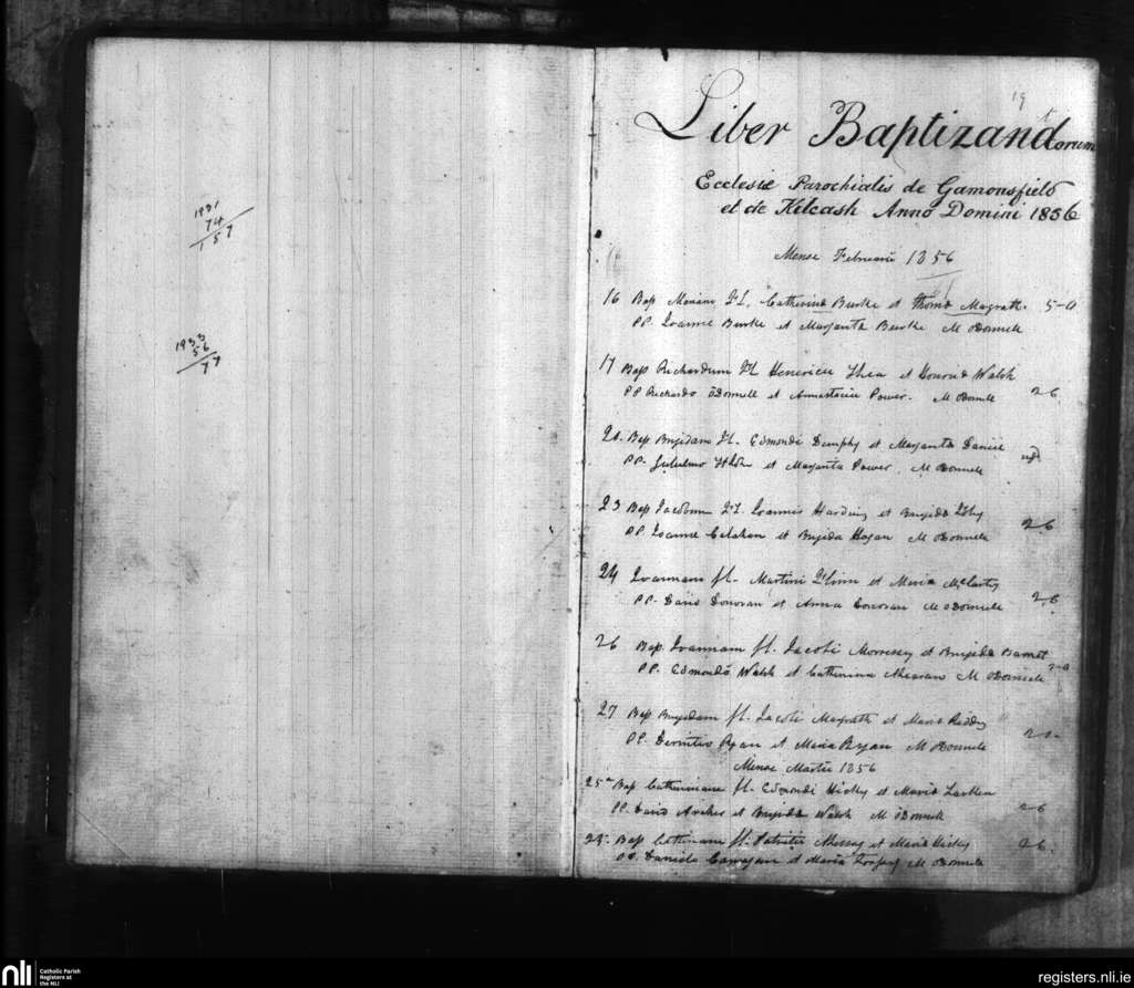 Gambonsfield and Kilcash; County of Tipperary, Waterford; Diocese of Waterford and Lismore. Baptisms, Feb. 1856 to Mar. 1856