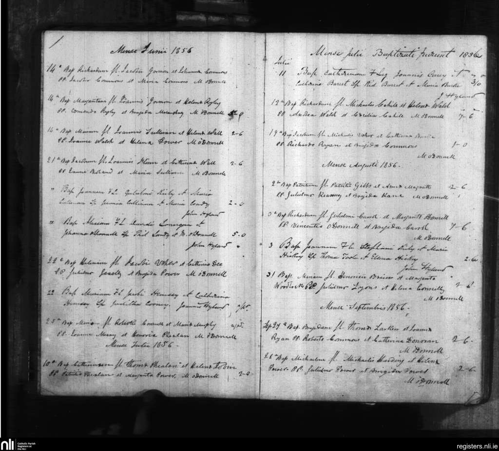 Gambonsfield and Kilcash; County of Tipperary, Waterford; Diocese of Waterford and Lismore. Baptisms, June 1856 to Sep. 1856