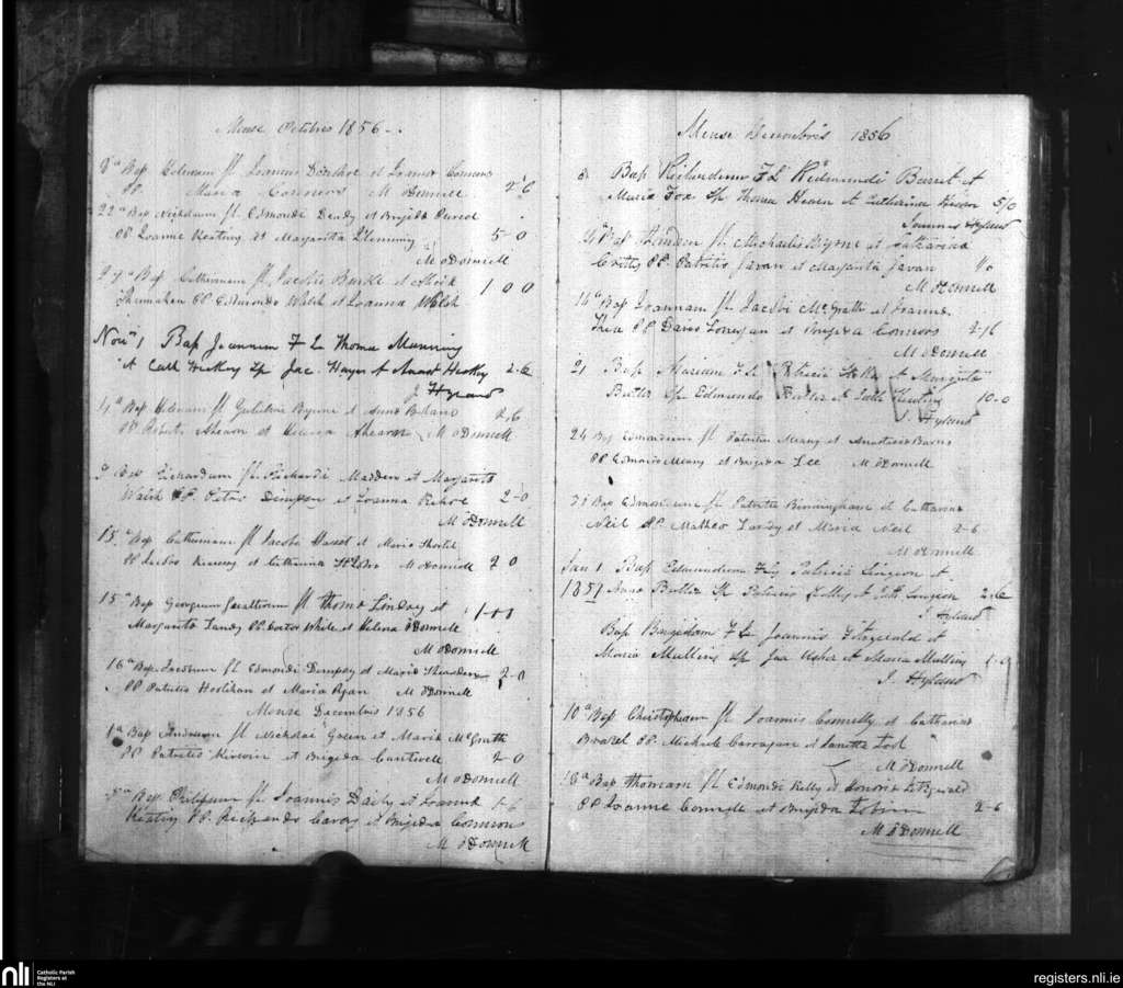 Gambonsfield and Kilcash; County of Tipperary, Waterford; Diocese of Waterford and Lismore. Baptisms, Oct. 1856 to Jan. 1857