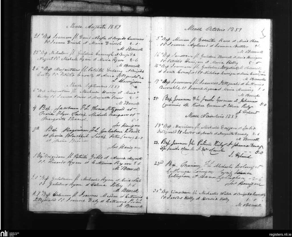 Gambonsfield and Kilcash; County of Tipperary, Waterford; Diocese of Waterford and Lismore. Baptisms, Aug. 1859 to Nov. 1859