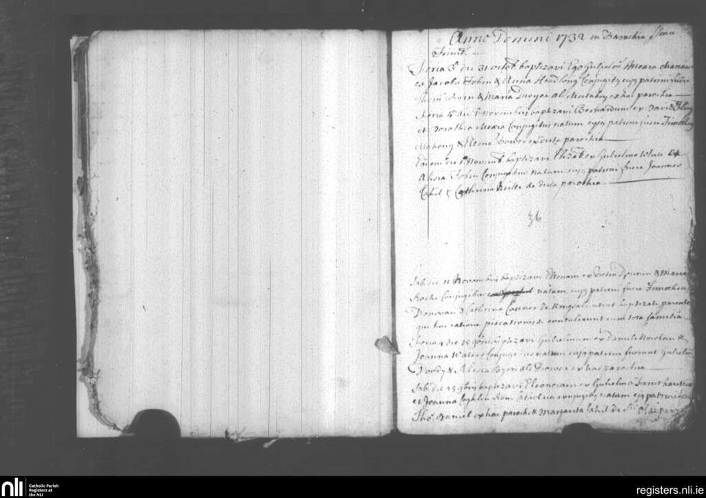 Holy Trinity, Waterford city; County of Waterford; Diocese of Waterford and Lismore. Baptisms, Oct. 1732 to Nov. 1732