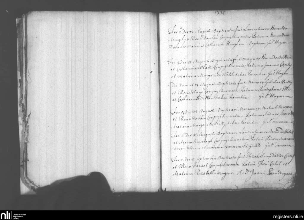 Holy Trinity, Waterford city; County of Waterford; Diocese of Waterford and Lismore. Baptisms, Aug. 1734 to Sep. 1734