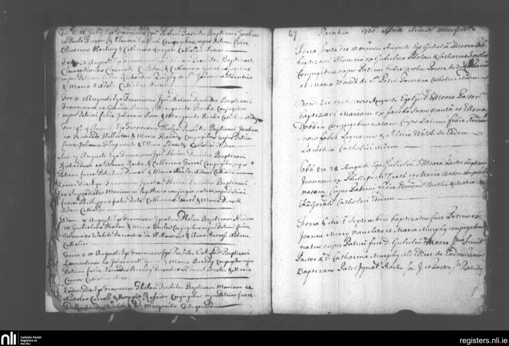 Holy Trinity, Waterford city; County of Waterford; Diocese of Waterford and Lismore. Baptisms, Aug. 1736 to Sep. 1736