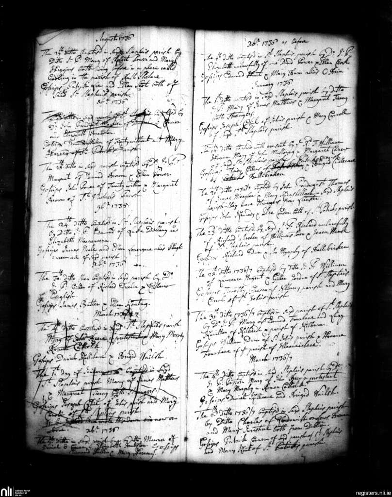 Holy Trinity, Waterford city; County of Waterford; Diocese of Waterford and Lismore. Baptisms, Aug. 1736 to Mar. 1737
