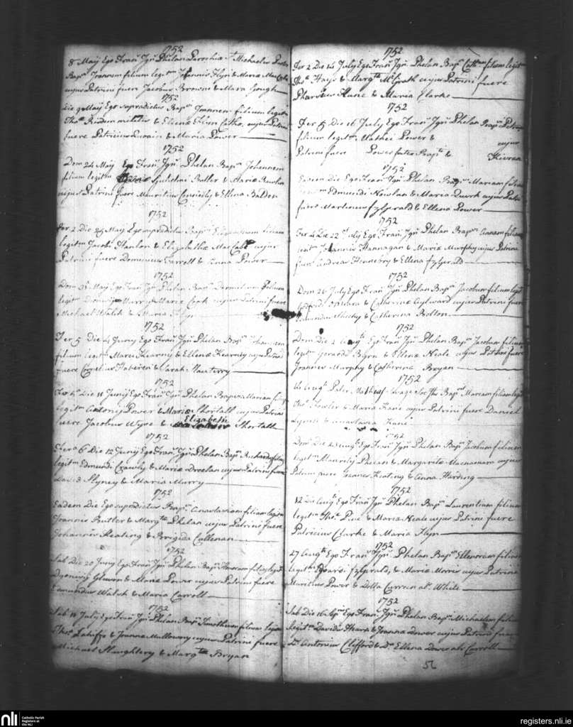Holy Trinity, Waterford city; County of Waterford; Diocese of Waterford and Lismore. Baptisms, May 1752 to Sep. 1752