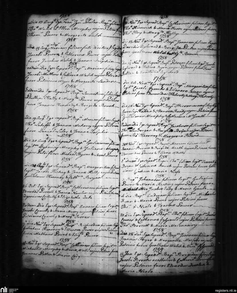 Holy Trinity, Waterford city; County of Waterford; Diocese of Waterford and Lismore. Baptisms, Aug. 1758 to Jan. 1759