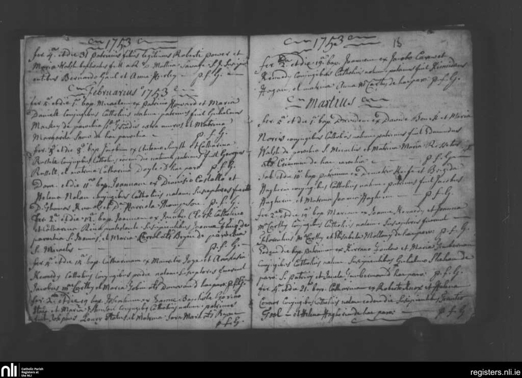 Holy Trinity, Waterford city; County of Waterford; Diocese of Waterford and Lismore. Baptisms, Jan. 1753 to Mar. 1753