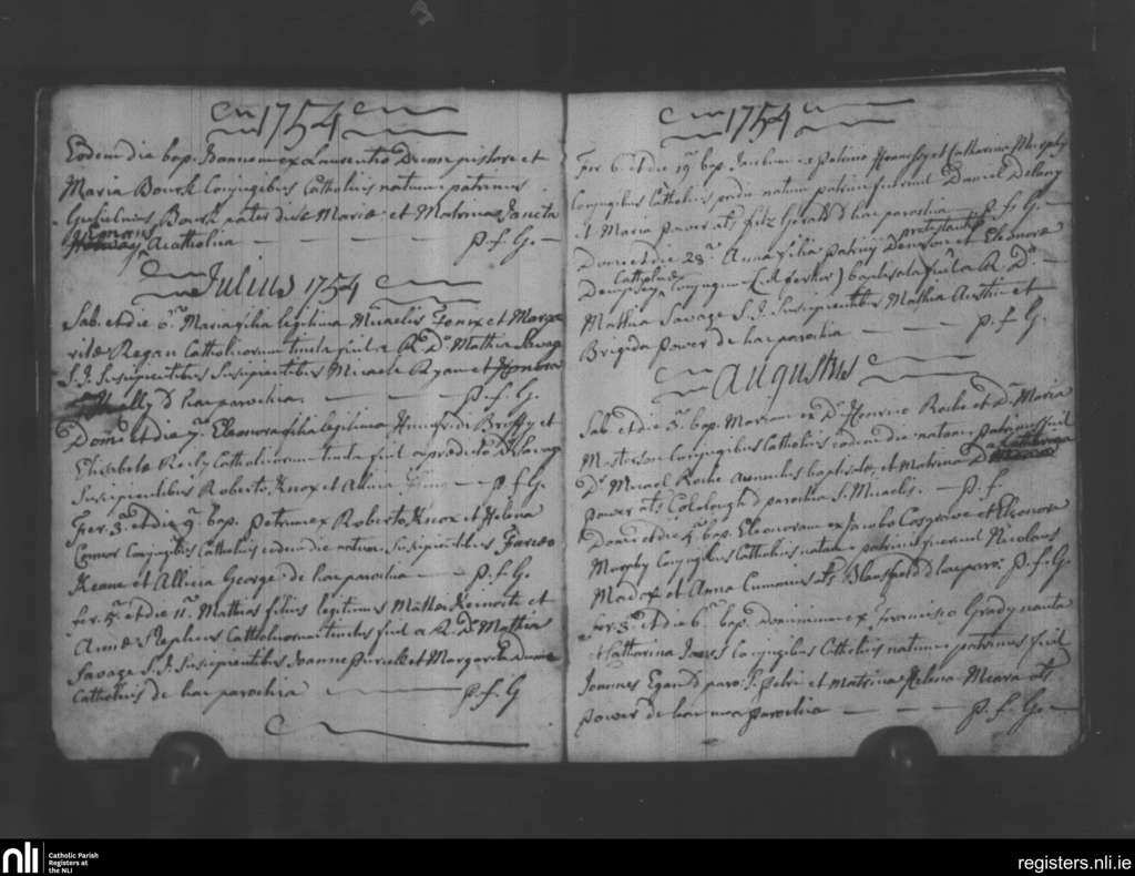 Holy Trinity, Waterford city; County of Waterford; Diocese of Waterford and Lismore. Baptisms, June 1754 to Aug. 1754