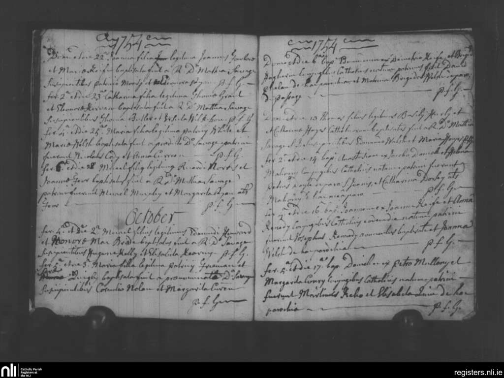 Holy Trinity, Waterford city; County of Waterford; Diocese of Waterford and Lismore. Baptisms, Sep. 1754 to Oct. 1754