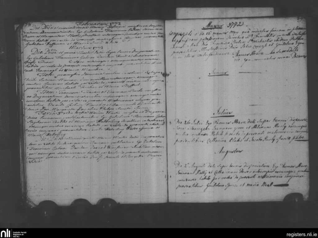 Holy Trinity, Waterford city; County of Waterford; Diocese of Waterford and Lismore. Marriages, Feb. 1772 to Aug. 1772