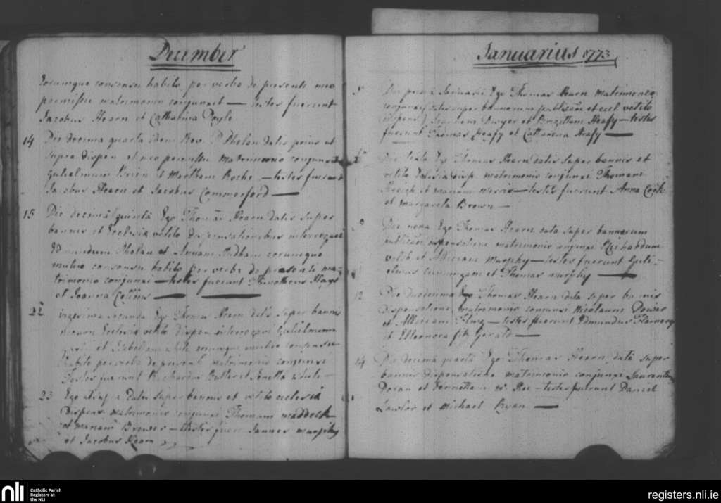 Holy Trinity, Waterford city; County of Waterford; Diocese of Waterford and Lismore. Marriages, Dec. 1772 to Jan. 1773