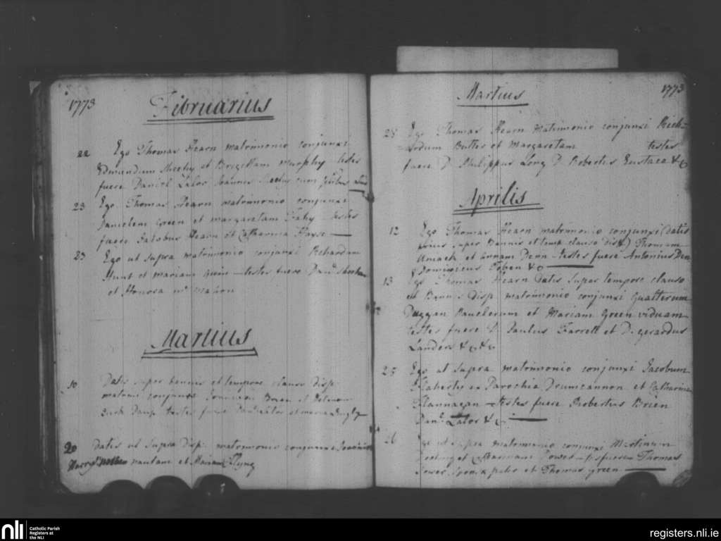 Holy Trinity, Waterford city; County of Waterford; Diocese of Waterford and Lismore. Marriages, Feb. 1773 to Apr. 1773