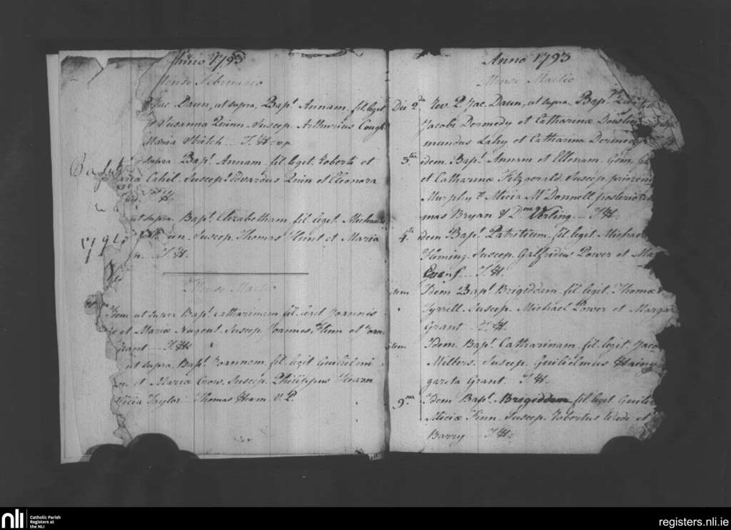 Holy Trinity, Waterford city; County of Waterford; Diocese of Waterford and Lismore. Baptisms, Feb. 1793 to Mar. 1793
