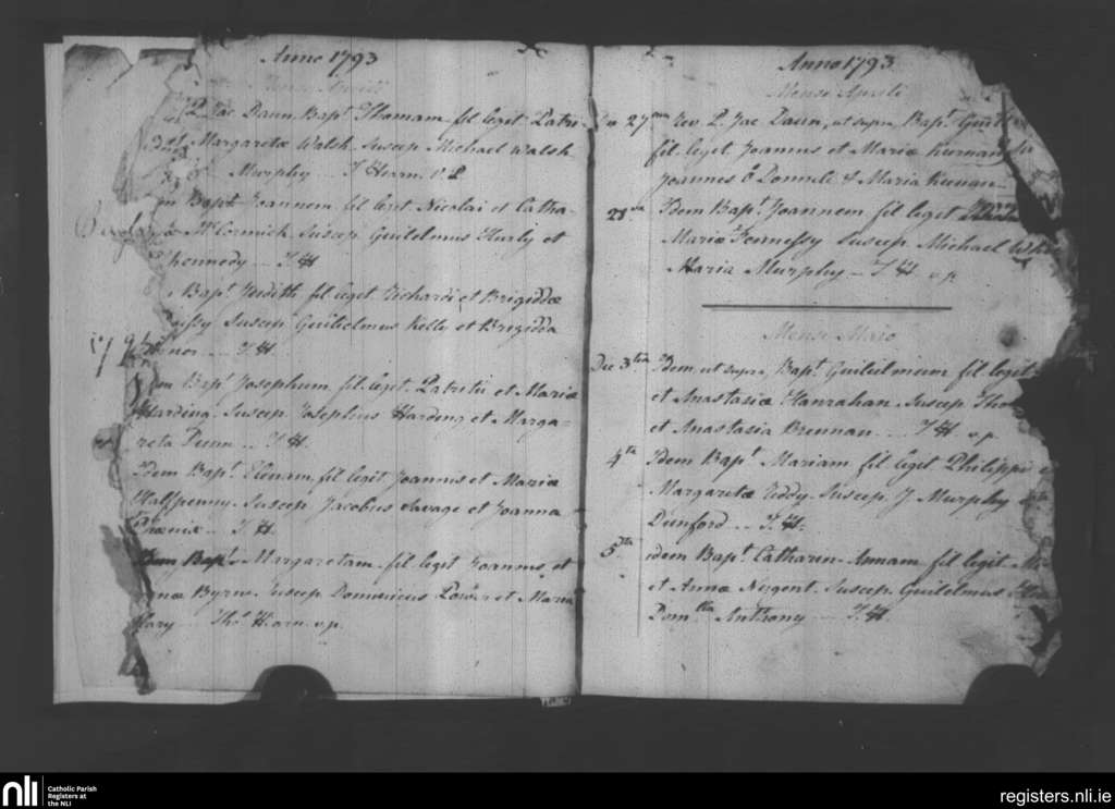 Holy Trinity, Waterford city; County of Waterford; Diocese of Waterford and Lismore. Baptisms, Apr. 1793 to May 1793