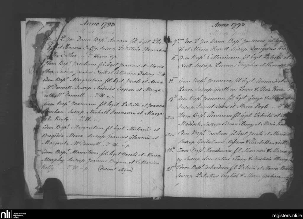 Holy Trinity, Waterford city; County of Waterford; Diocese of Waterford and Lismore. Baptisms, June 1793 to July 1793