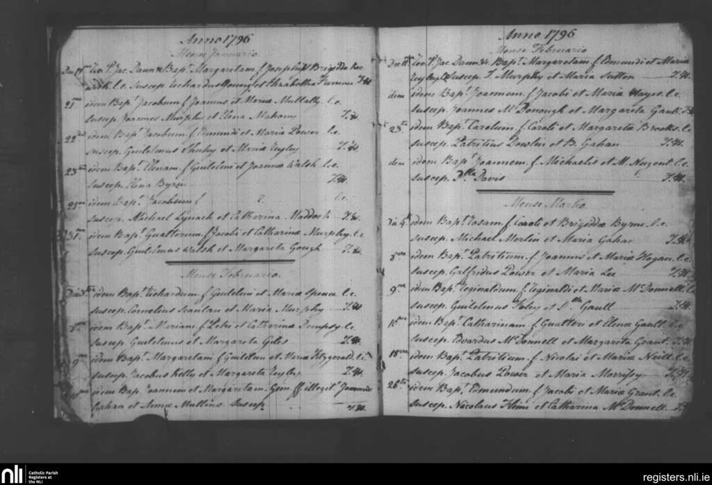 Holy Trinity, Waterford city; County of Waterford; Diocese of Waterford and Lismore. Baptisms, Jan. 1796 to Mar. 1796