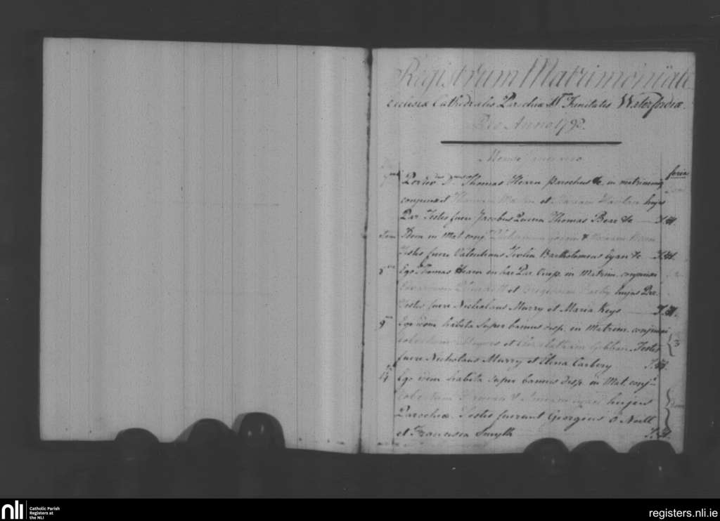 Holy Trinity, Waterford city; County of Waterford; Diocese of Waterford and Lismore. Marriages, Jan. 1798