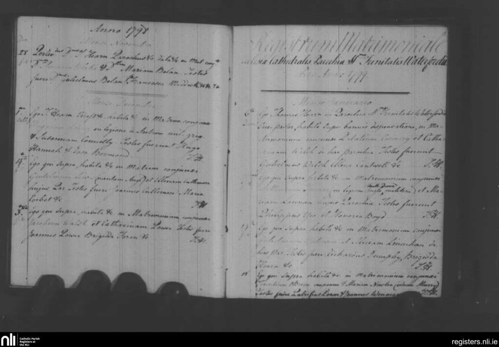 Holy Trinity, Waterford city; County of Waterford; Diocese of Waterford and Lismore. Marriages, Nov. 1798 to Jan. 1799