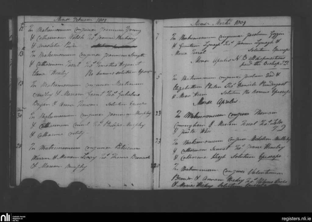 Holy Trinity, Waterford city; County of Waterford; Diocese of Waterford and Lismore. Marriages, Feb. 1809 to Apr. 1809