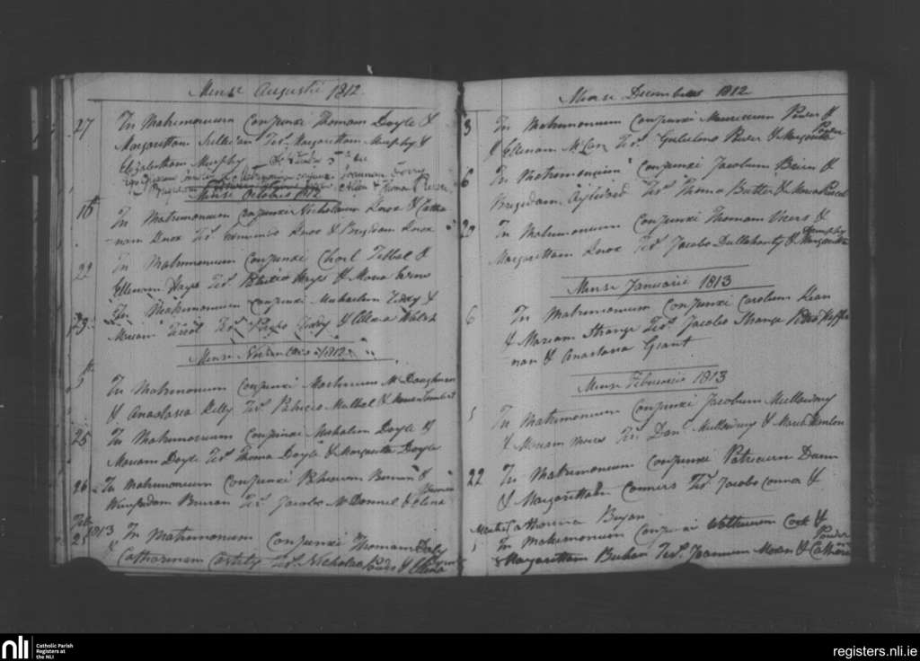 Holy Trinity, Waterford city; County of Waterford; Diocese of Waterford and Lismore. Marriages, Aug. 1812 to Mar. 1813