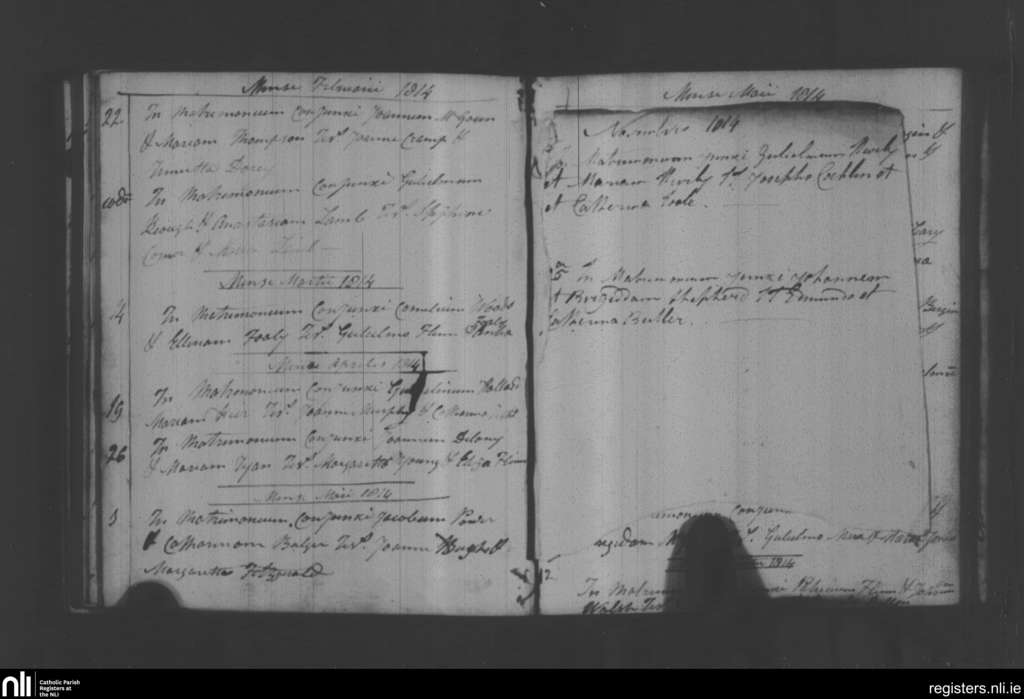 Holy Trinity, Waterford city; County of Waterford; Diocese of Waterford and Lismore. Marriages, Feb. 1814 to Nov. 1814