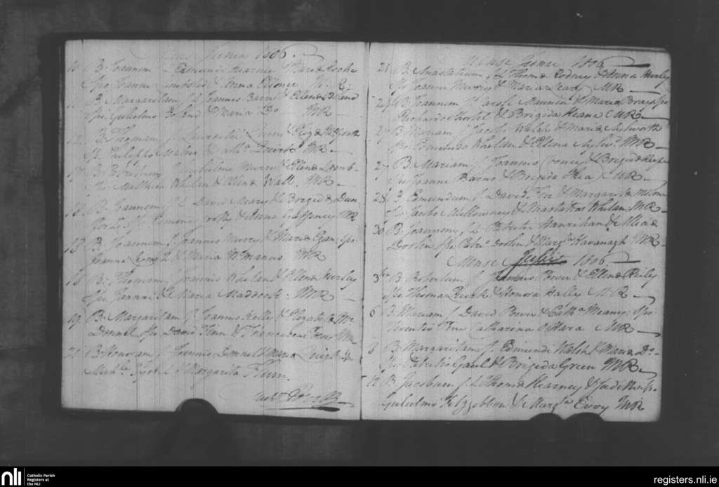 Holy Trinity, Waterford city; County of Waterford; Diocese of Waterford and Lismore. Baptisms, June 1806 to July 1806