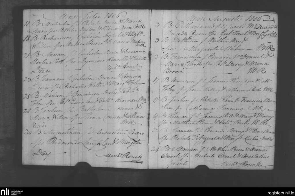 Holy Trinity, Waterford city; County of Waterford; Diocese of Waterford and Lismore. Baptisms, July 1806 to Aug. 1806