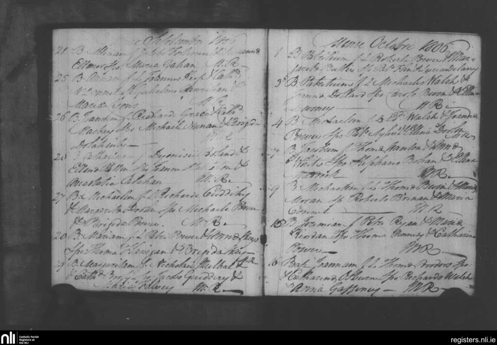 Holy Trinity, Waterford city; County of Waterford; Diocese of Waterford and Lismore. Baptisms, Sep. 1806 to Oct. 1806