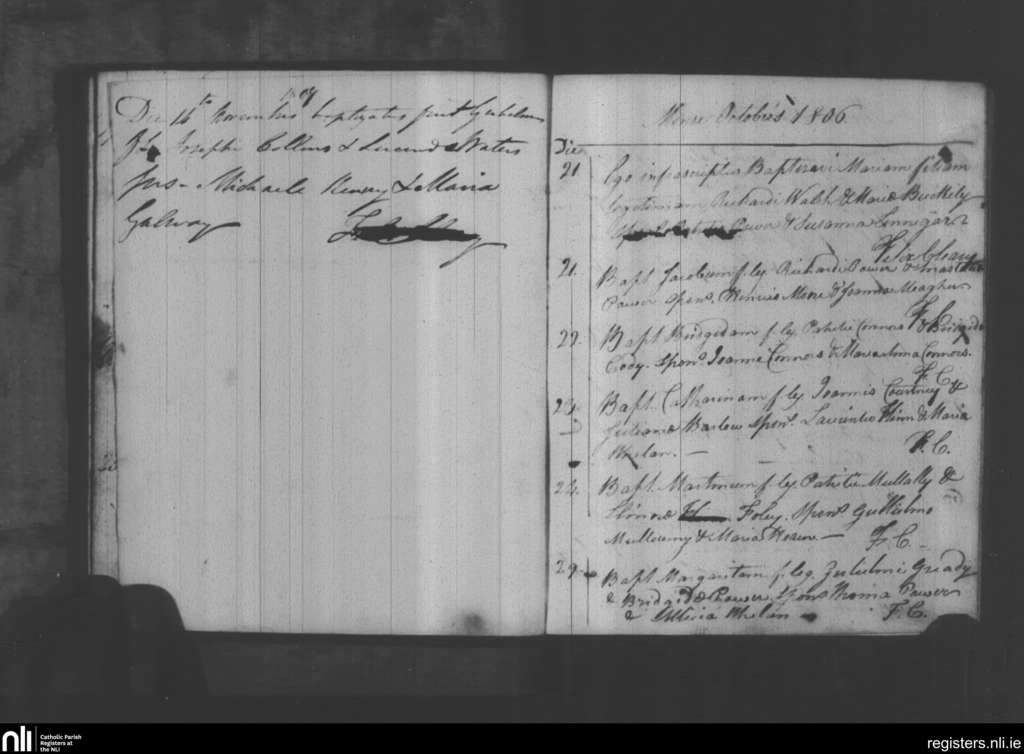 Holy Trinity, Waterford city; County of Waterford; Diocese of Waterford and Lismore. Baptisms, Oct. 1806 to Nov. 1807