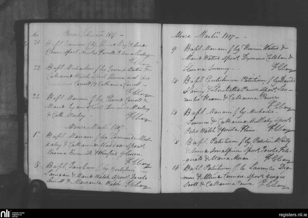 Holy Trinity, Waterford city; County of Waterford; Diocese of Waterford and Lismore. Baptisms, Feb. 1807 to Mar. 1807