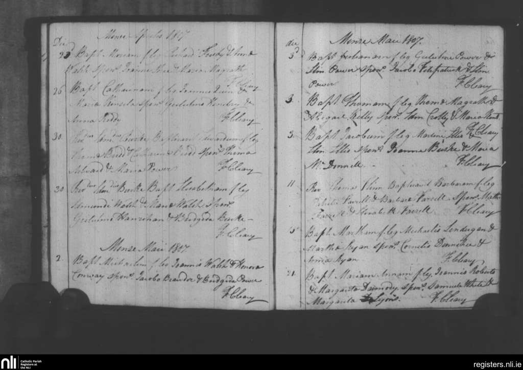 Holy Trinity, Waterford city; County of Waterford; Diocese of Waterford and Lismore. Baptisms, Apr. 1807 to May 1807