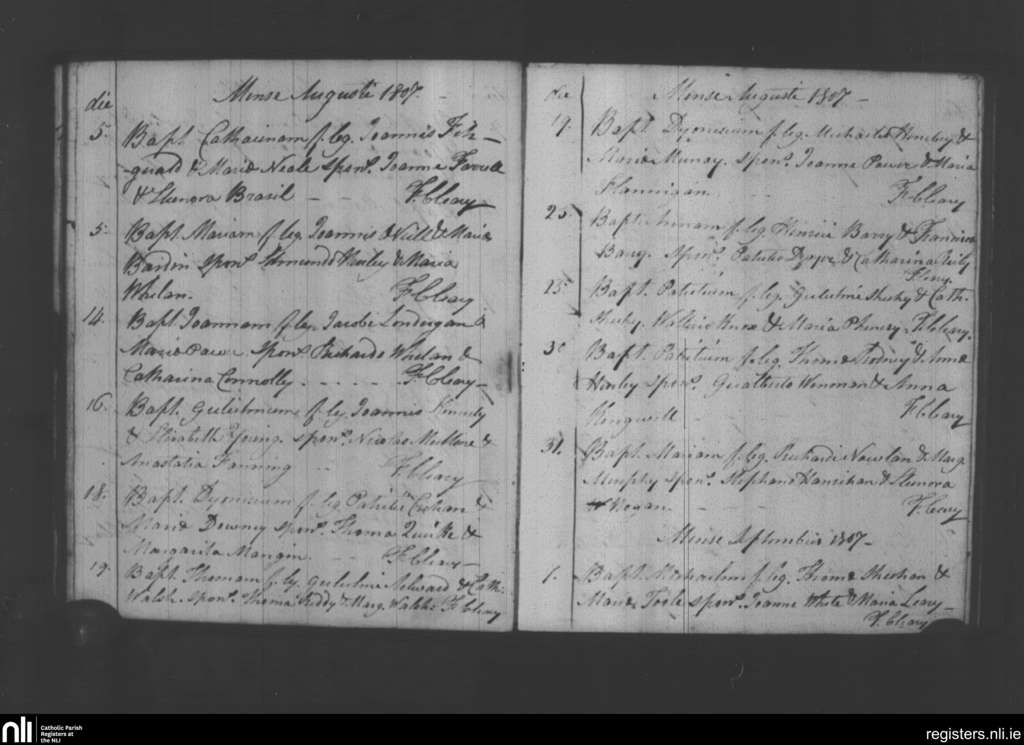 Holy Trinity, Waterford city; County of Waterford; Diocese of Waterford and Lismore. Baptisms, Aug. 1807 to Sep. 1807