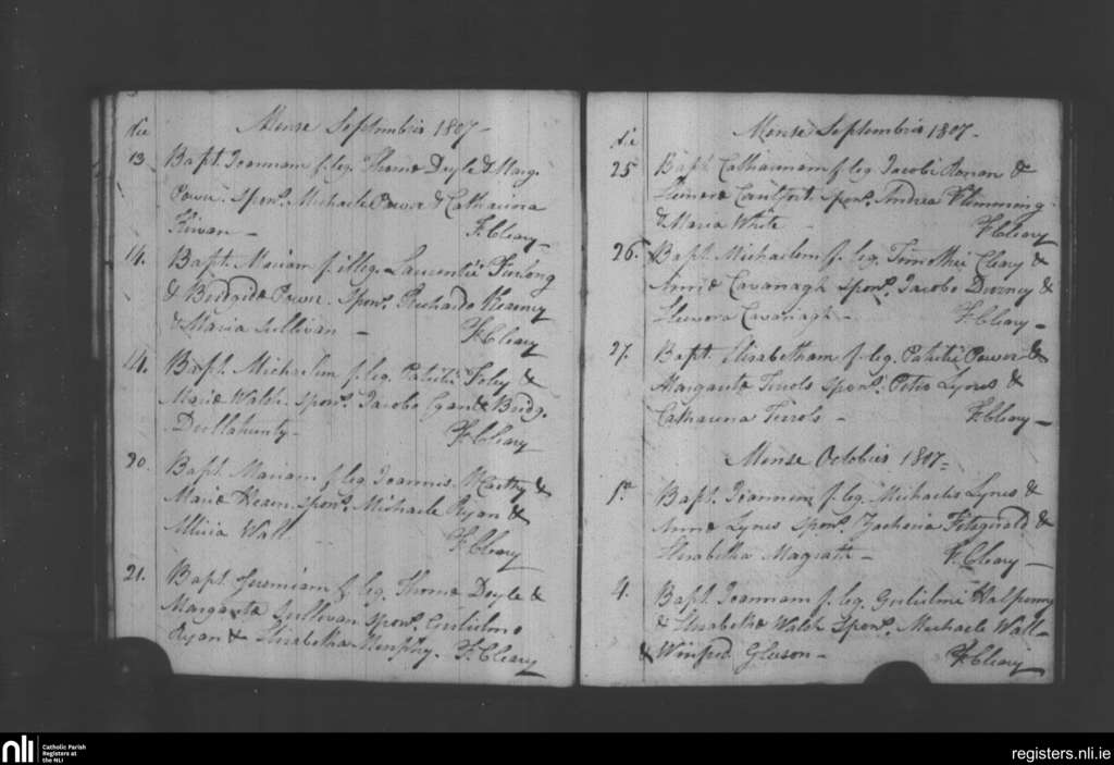 Holy Trinity, Waterford city; County of Waterford; Diocese of Waterford and Lismore. Baptisms, Sep. 1807 to Oct. 1807