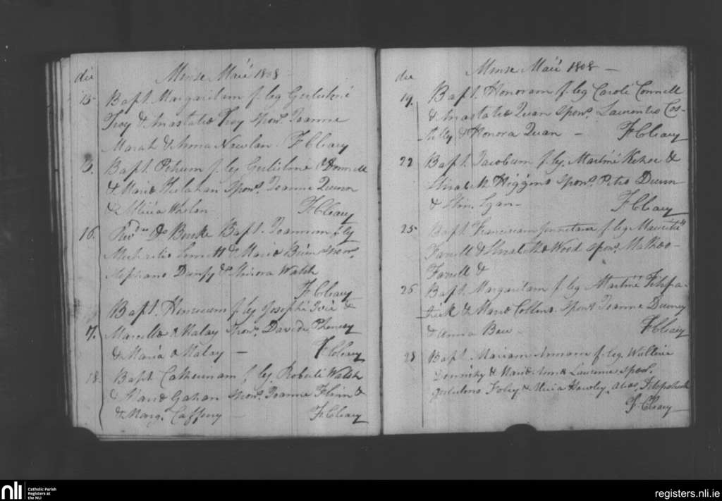 Holy Trinity, Waterford city; County of Waterford; Diocese of Waterford and Lismore. Baptisms, May 1808