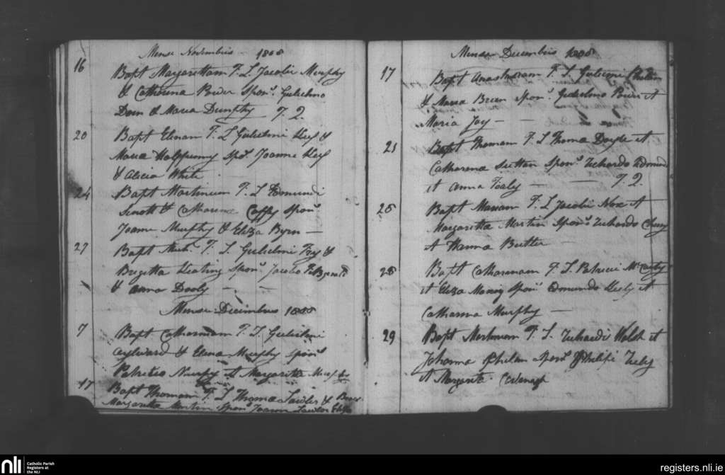 Holy Trinity, Waterford city; County of Waterford; Diocese of Waterford and Lismore. Baptisms, Nov. 1808 to Dec. 1808