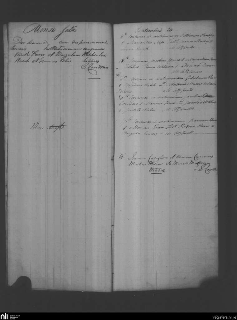 Holy Trinity, Waterford city; County of Waterford; Diocese of Waterford and Lismore. Marriages, July 1820 to Sep. 1820