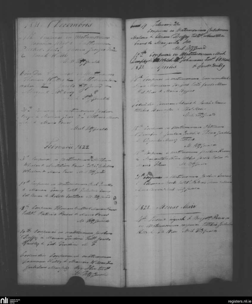 Holy Trinity, Waterford city; County of Waterford; Diocese of Waterford and Lismore. Marriages, Dec. 1821 to May 1822