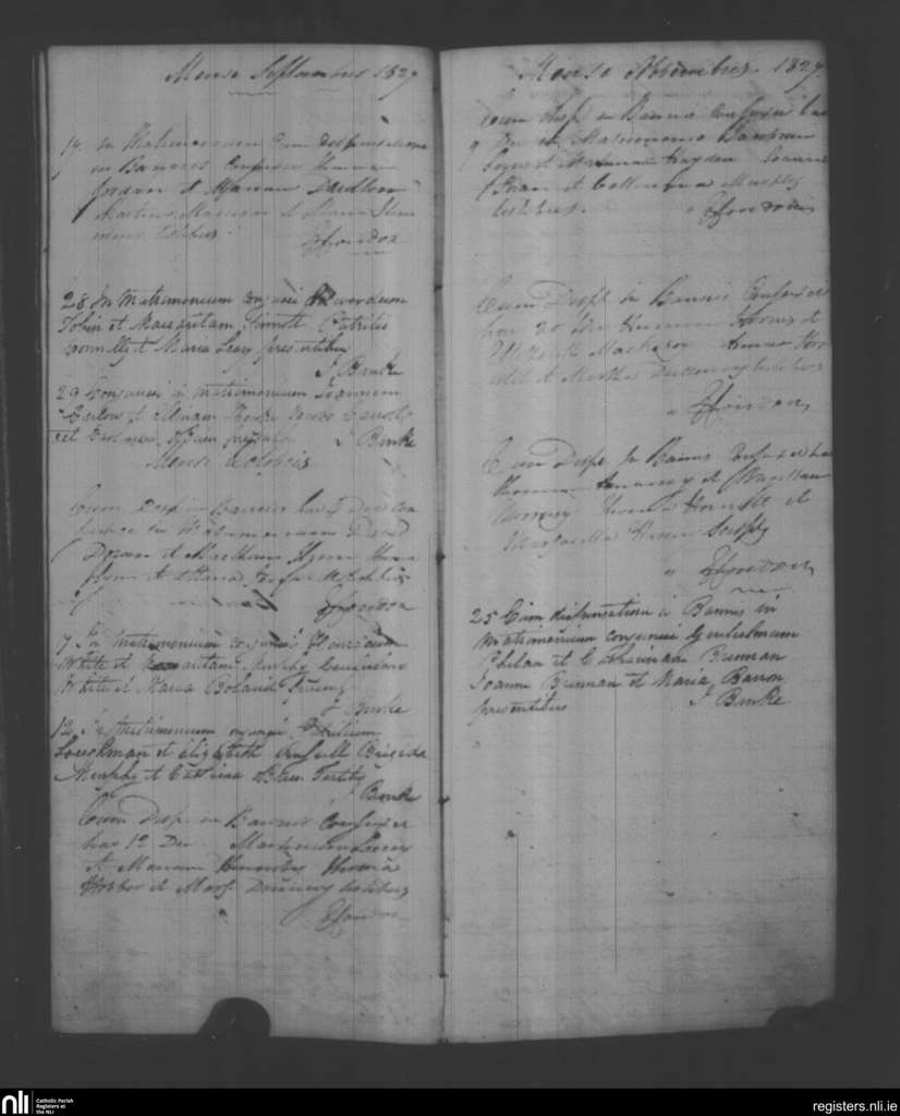 Holy Trinity, Waterford city; County of Waterford; Diocese of Waterford and Lismore. Marriages, Sep. 1827 to Nov. 1827